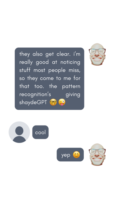 “In our pursuit to improve, it's necessary to evaluate what areas of our goals are experiencing incongruity or imbalance. This requires a refined eye for both detail and flow, not simply crude criticism. You need an eye that can see from above and put the pieces together. If you're ready for a nuanced conversation about your goals, shayde is your best bet.”