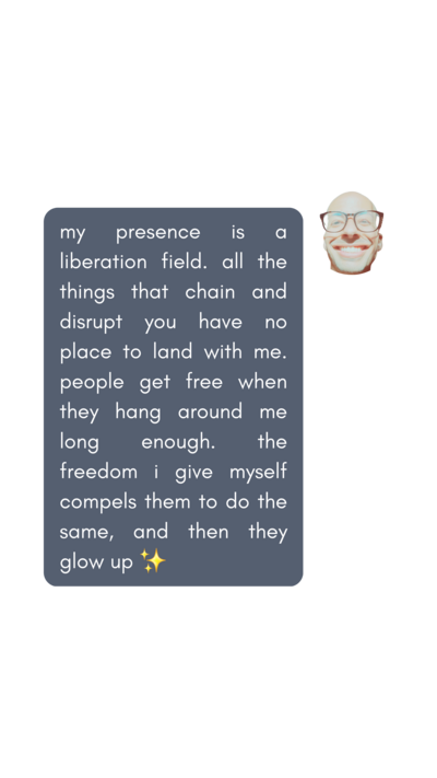 “I get this sense of energetic cleanliness. It makes the relationship so much more expansive and joyous, and light! There’s lightness even when we talk of death. It’s making me so much more comfortable in the friendship than I would typically be. Your words are backed up by your energy and that is part of your alchemy. You loosen up something in me and like in a video game I just go to the next level in my own self expression.”